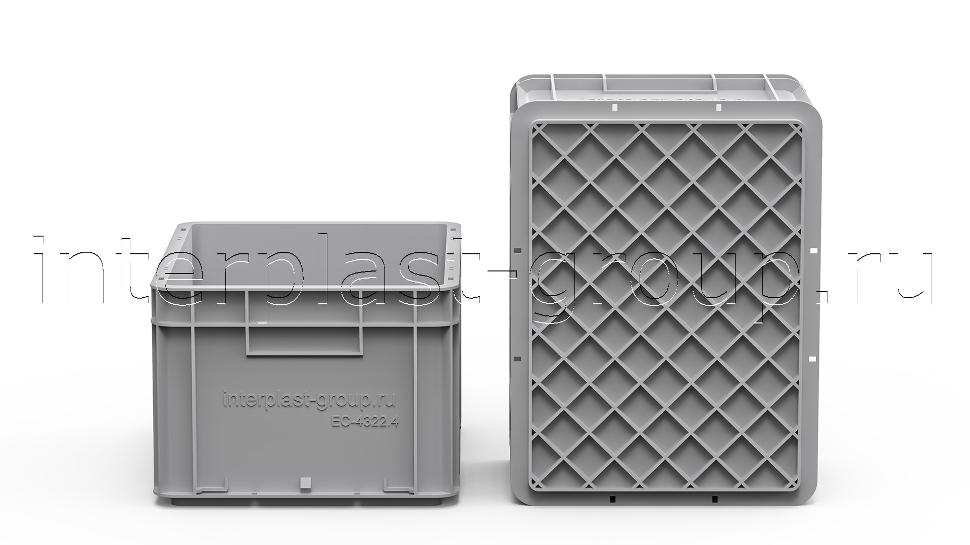 Евроконтейнер закрытые ручки/усиленное дно (серый), 400x300x220 мм