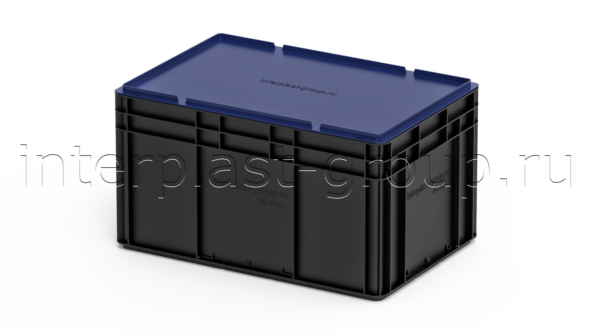 Евроконтейнер закрытые ручки/сплошное дно (черный), 600x400x320 мм