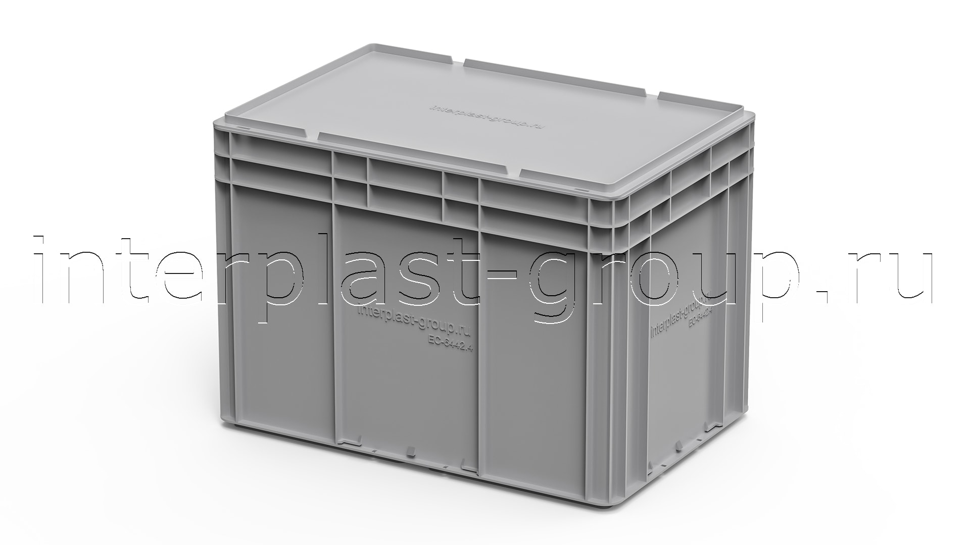 Евроконтейнер закрытые ручки/усиленное дно (серый), 600x400x420 мм