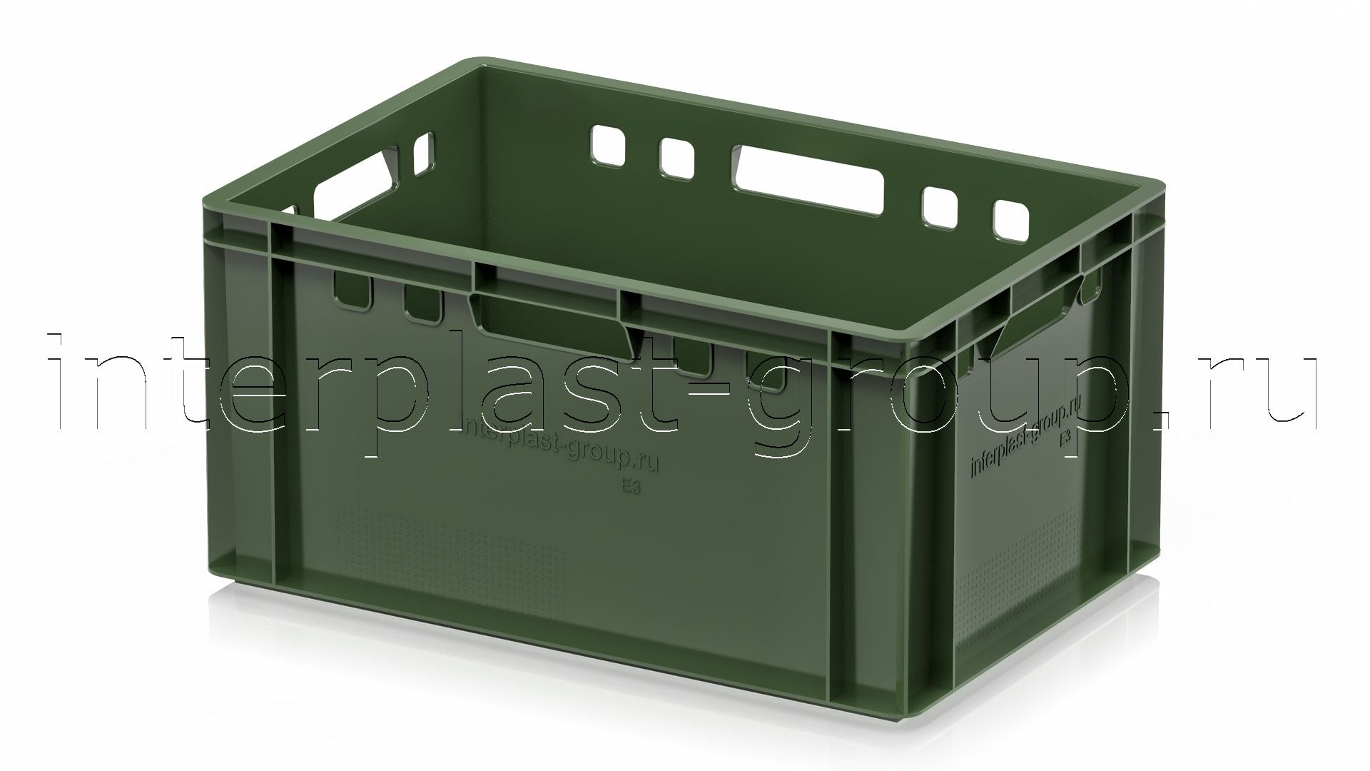 Зелёный ящик серии Е-3 используется как ящик для хранения и контейнер для хранения в холодильных и морозильных камерах, а также как ящик для склада и складской ящик при работе с крупными партиями продукции. Он удобен как ящик для транспортировки за счёт устойчивой конструкции и возможности штабелирования.