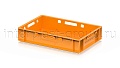 Ящик для мяса Е1 это первый по размеру в линейке мясных ящиков. Разработан специально для использования в мясной промышленности. Отлично штабелируется и собирается в единый сет со всеми ящиками серии. Изготовлен из первичного полиэтилена, и адаптирован для хранения в холодильных и морозильных камерах.