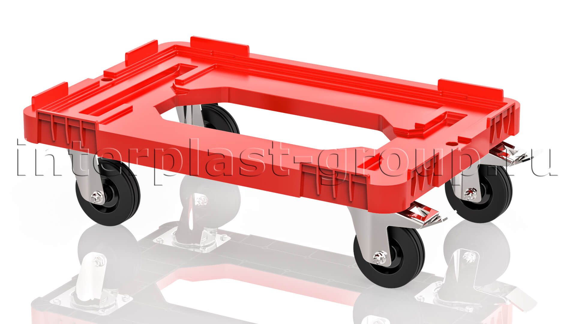 Тележка пластиковая с отверстием 2 колеса с тормозом красная