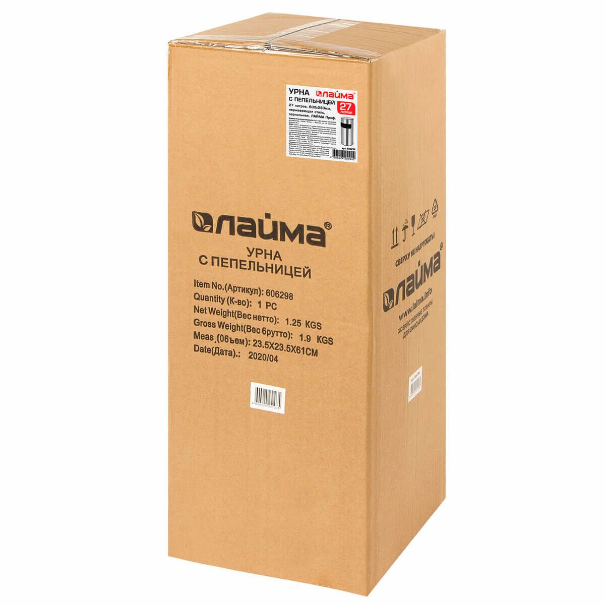Урна с пепельницей 27 л, нержавеющая сталь, зеркальная, LAIMA PROFESSIONAL в Павлодаре